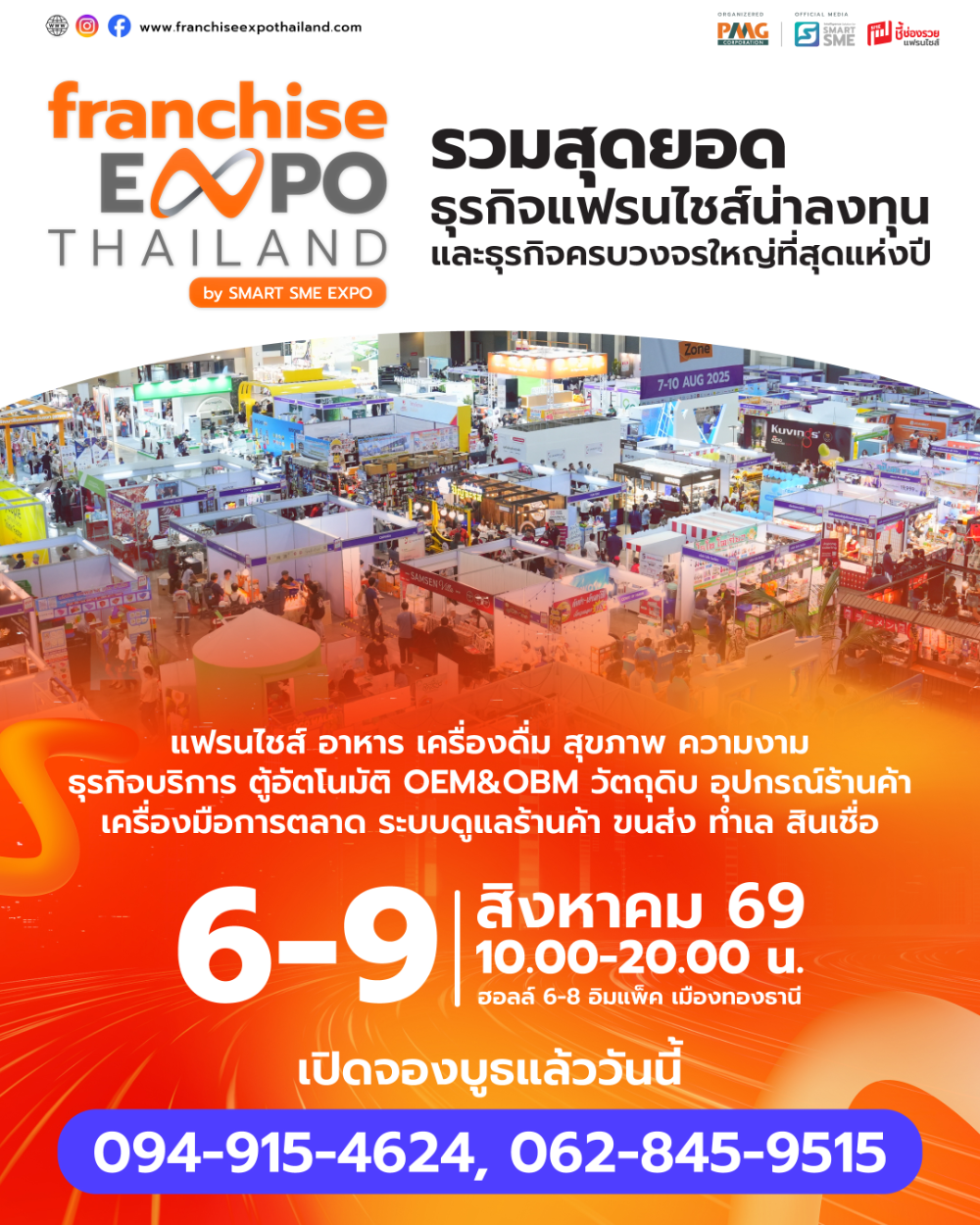 เป็นมากกว่าพื้นที่แสดงงาน คือแพลตฟอร์มที่ช่วยให้แฟรนไชส์เติบโตจริง ผ่านสื่อ อีเว้นท์ เวทีโชว์เคส และกิจกรรมที่ออกแบบมาเพื่อเสริมพลังให้แบรนด์ขยายสาขาได้อย่างรวดเร็ว
